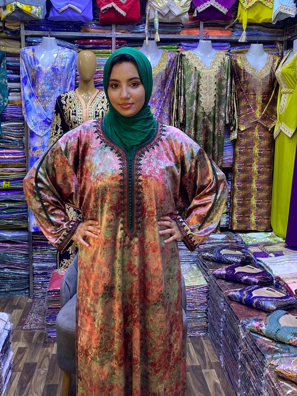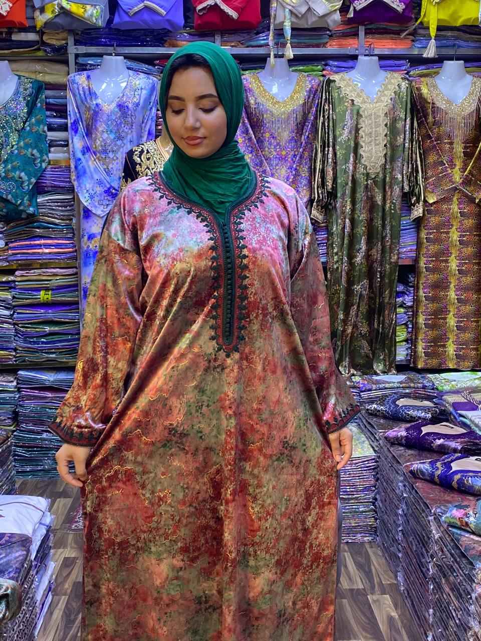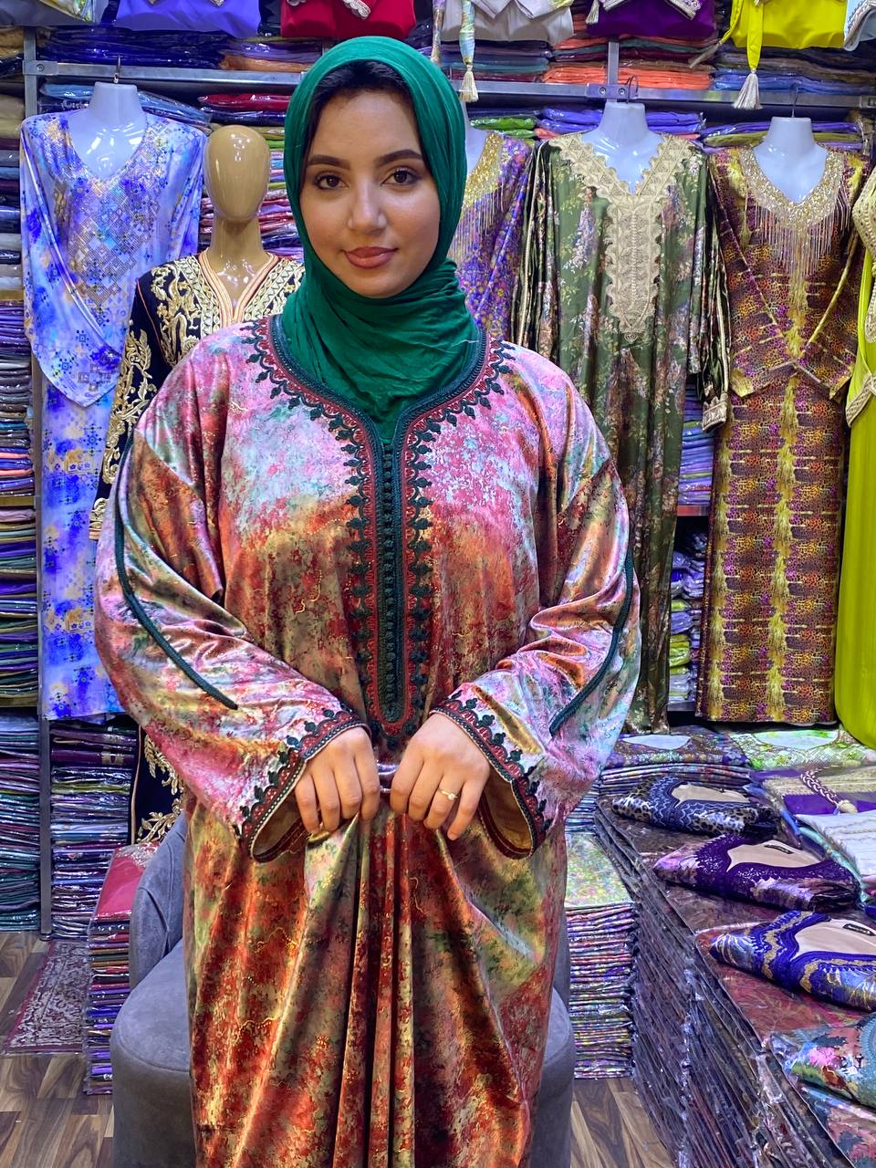 Caftan velour Rose et vert