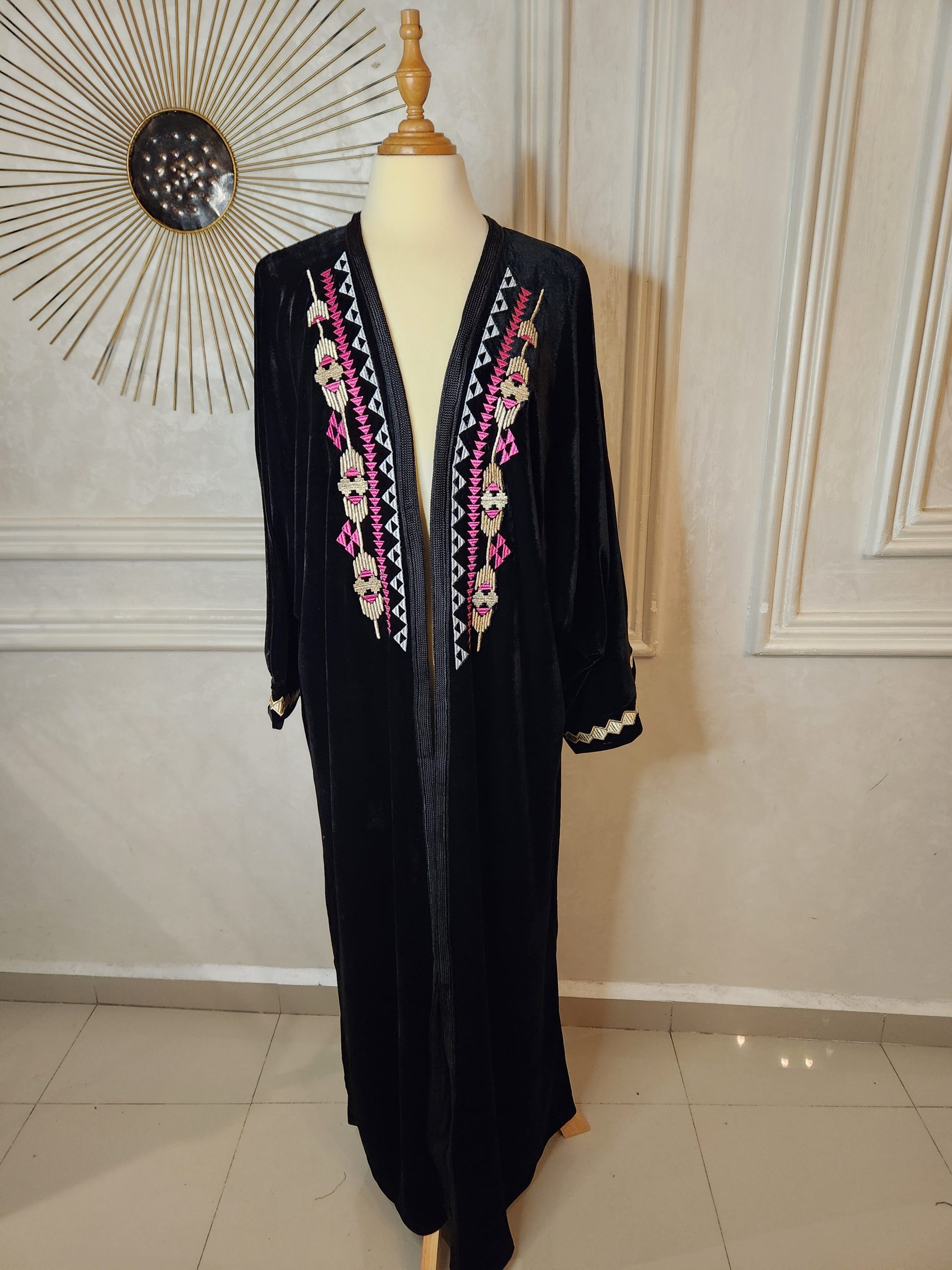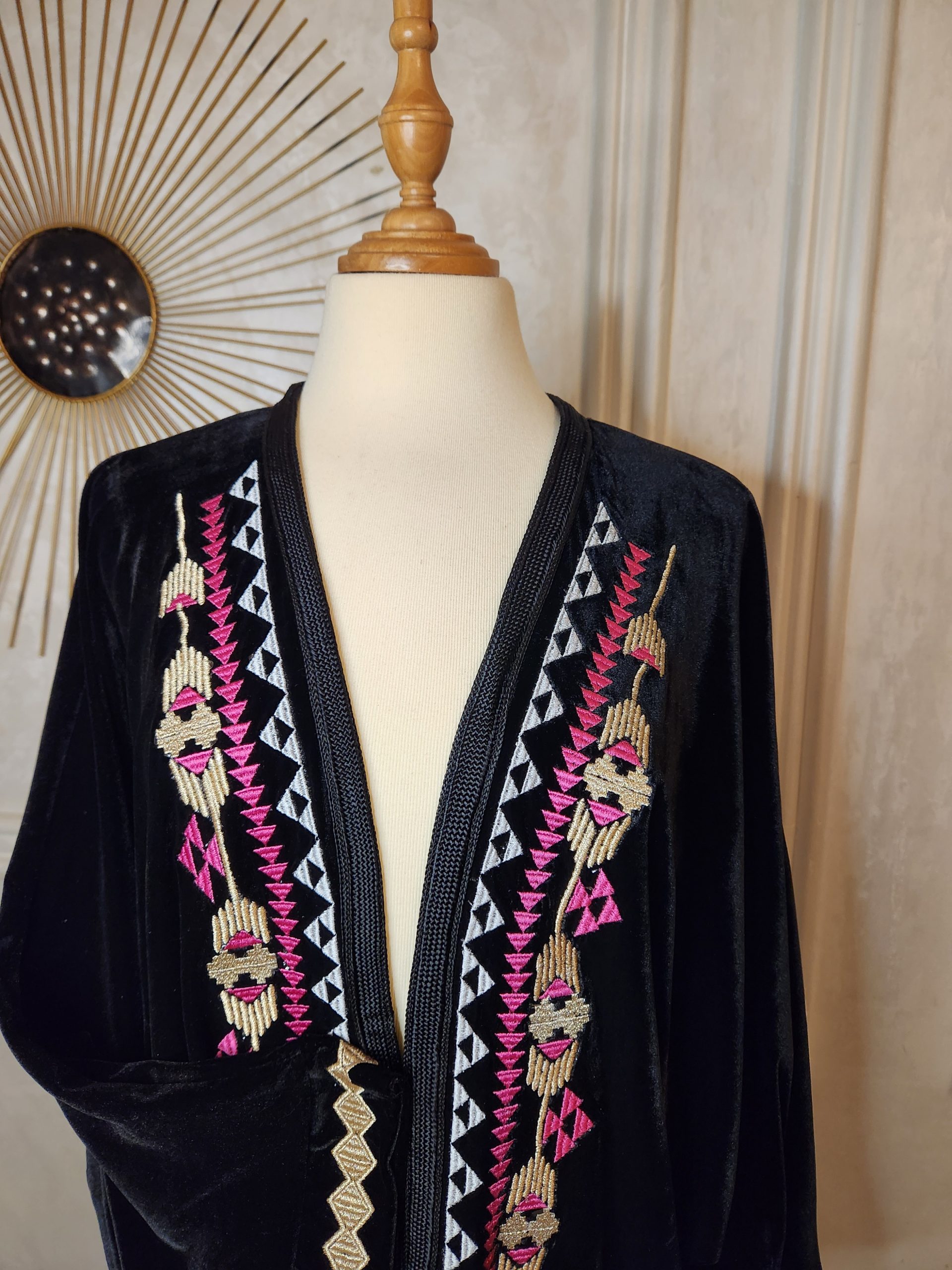 Kimono noir en velour avec tarz coloré